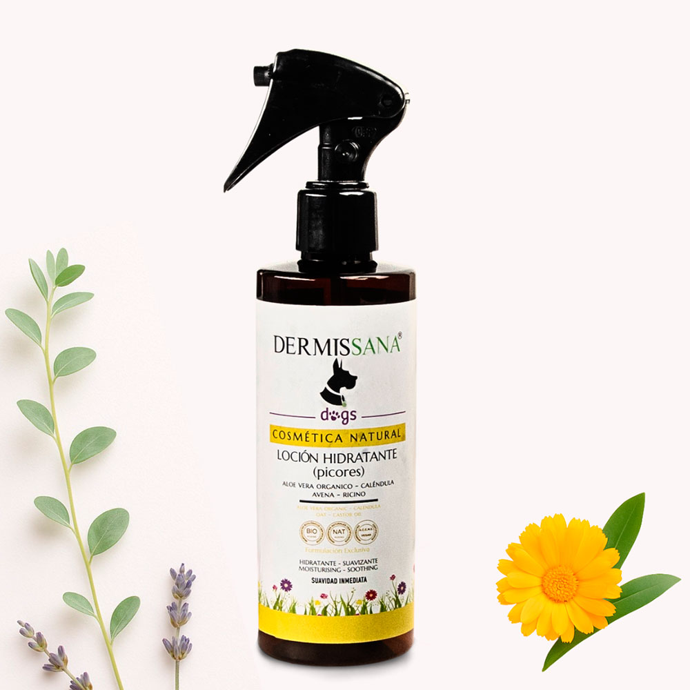 Loción hidratante de uso tópico formulada para el cuidado de la piel seca, con descamación o con tendencia al picor en perros. Está especialmente indicada para mantener la piel en buen estado entre baños, aportando hidratación y ayudando a mejorar el aspecto del pelaje.