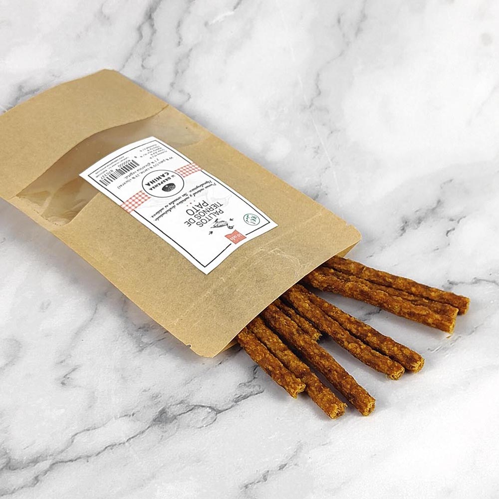 Estos palitos tiernos están elaborados con pato secado al aire mediante un proceso natural, pensado para conservar el sabor y el valor nutricional de la materia prima sin recurrir a formulaciones complejas. La combinación de carne y vísceras aporta variedad de tejidos animales dentro de un snack sencillo y funcional.
