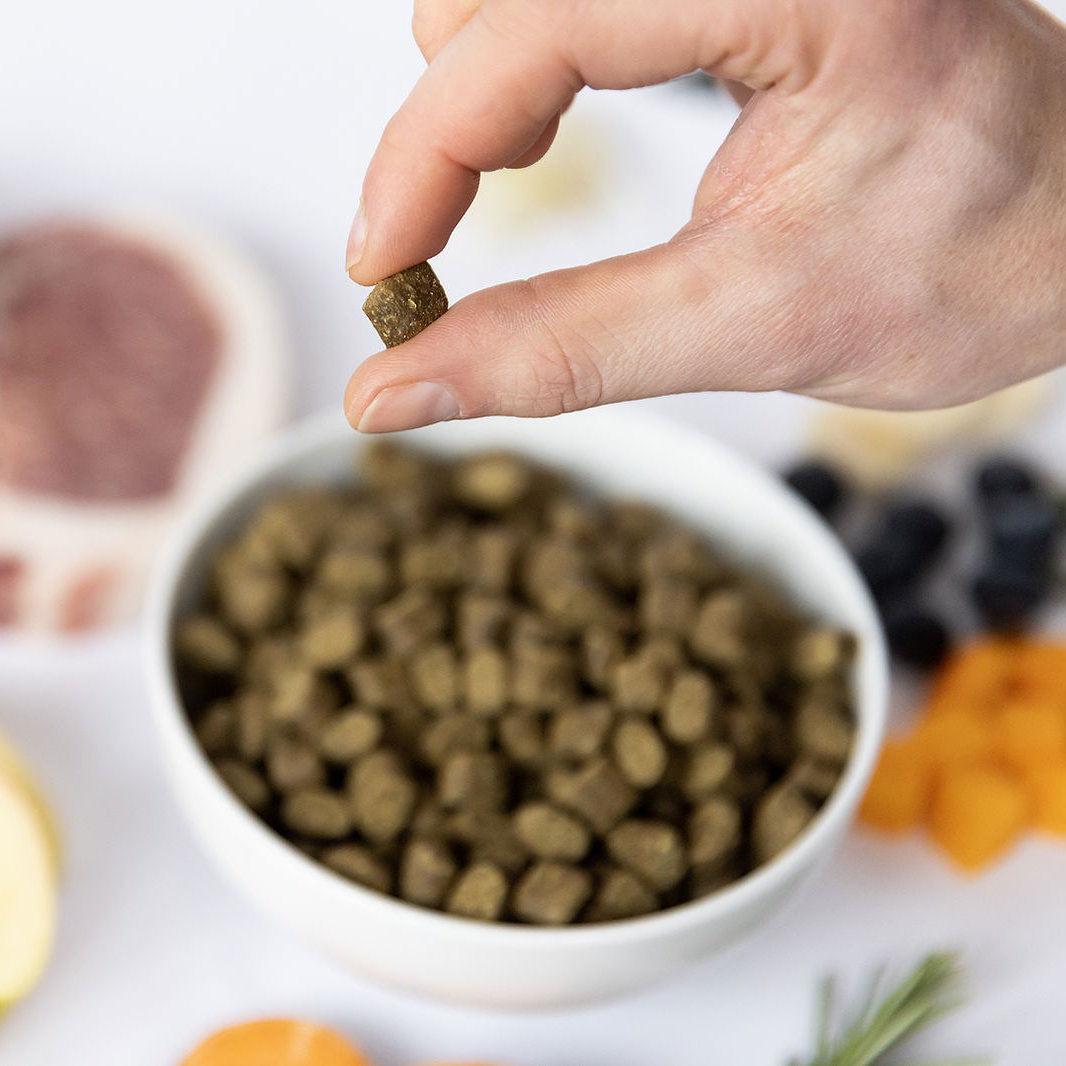 Elaborado con un innovador proceso de cocción lenta a baja temperatura (máx. 78 °C), este pienso semihúmedo mantiene un alto nivel de humedad natural, resultando especialmente fácil de masticar, incluso para perros mayores o con sensibilidad dental.